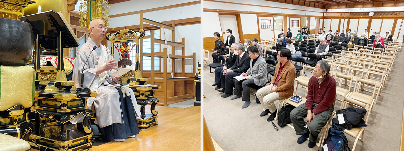 法要は献膳・読経・唱題行と如法に厳修され、天野御住職より日目上人様について、御出自から日興上人との出会い、および身延における7年間の日蓮大聖人への常随給仕について。また大石寺開創の翌十三日に日興上人より血脈内付の証として授与された譲座(じょうざ)御本尊(御座替御本尊/おざがわりごほんぞん)と『日興跡条々事』を賜っての第三祖としての御相承、そして最後の天奏について等々その御事跡について縷々述べられたのち、「この目師会をもって日目上人様の御功績を拝し奉り、その礎のもとに今の私たちの信行があることに御報恩謝徳申し上げ、私たちはそのお姿の一分でも学び次の代に渡し、そして折伏していくことが私たちの使命である。」等との御指導をいただきました。そして最後に日目上人様の御申状を奉読申し上げお題目を三唱し、「こうして奉読ののち題目三唱したということは、皆さんも奉読したという意義がある。それはどこまでも折伏根本に、皆がお題目を唱えていけるように努めていくことをお誓いしたということであり、また新たな気持ちで折伏弘教に精進してまいりましょう」等と述べられ、本年の目師会を結ばれました。