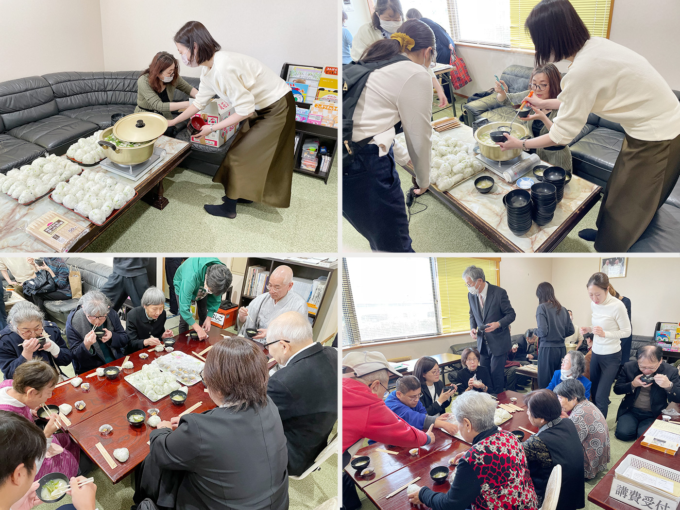 そして法要終了後、目師会の別称「かぶ御講」にちなんで、総本山と同様にお寺様がかぶのお味噌汁とおにぎり、お漬物等をご用意くださり、参詣者みんなで美味しく頂戴いたしました。