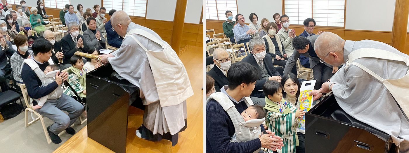 法要は献膳・読経・唱題と如法に厳修され、七五三祝いののち、天野御住職より令和7年11月度・御報恩御講拝読御書『兄弟抄』を拝読申し上げ、通解並びに池上家と当時の時代背景、同抄全体の概要等について述べられ、「私たちの生活においても、ご夫婦のどちらかが信心していない、両親は信心していても子供は信心していないなど、同じ御本尊様を拝せないところから苦しみが生じる。ことに子供に信心を法灯相続できていないと、自身が老齢になった時に厳しい状況にもなり得る。自分の人生の最後まで御本尊様を拝していけるようによくよく考え、しっかりと法灯相続しなければならない。池上兄弟は20年もの歳月をかけて真言律宗の僧・極楽寺良寛の熱心な信者であった父親を折伏した。皆さんにおいてもこれから大変な場面があったとしても、どこまでも御本尊様を中心に、決して魔に負けることなく、自分の人生を誤らないように、何があっても真っ直ぐに進んでまいりましょう。」等との御指導をいただきました。