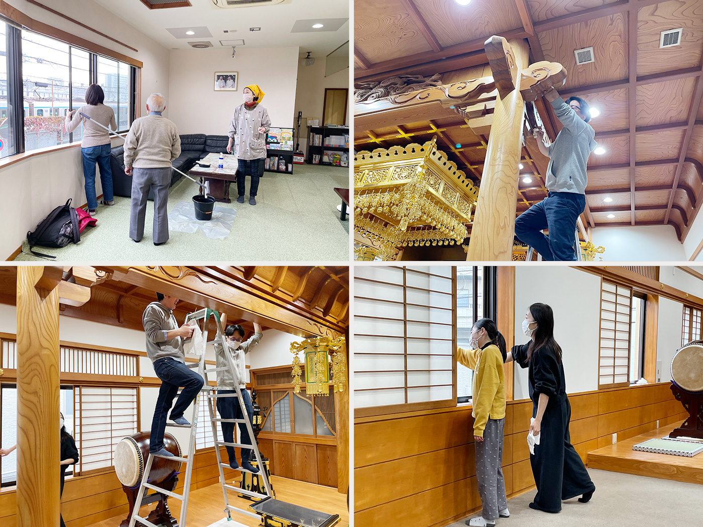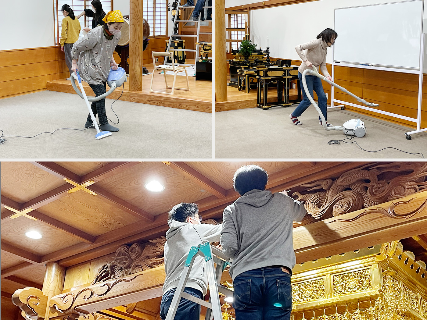 お餅つきの開催に合わせ、午前9時より、本堂を中心として年末大掃除が実施されました。