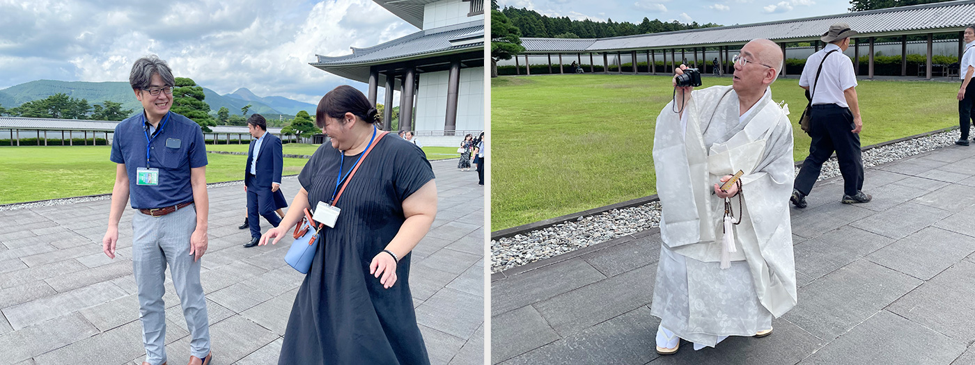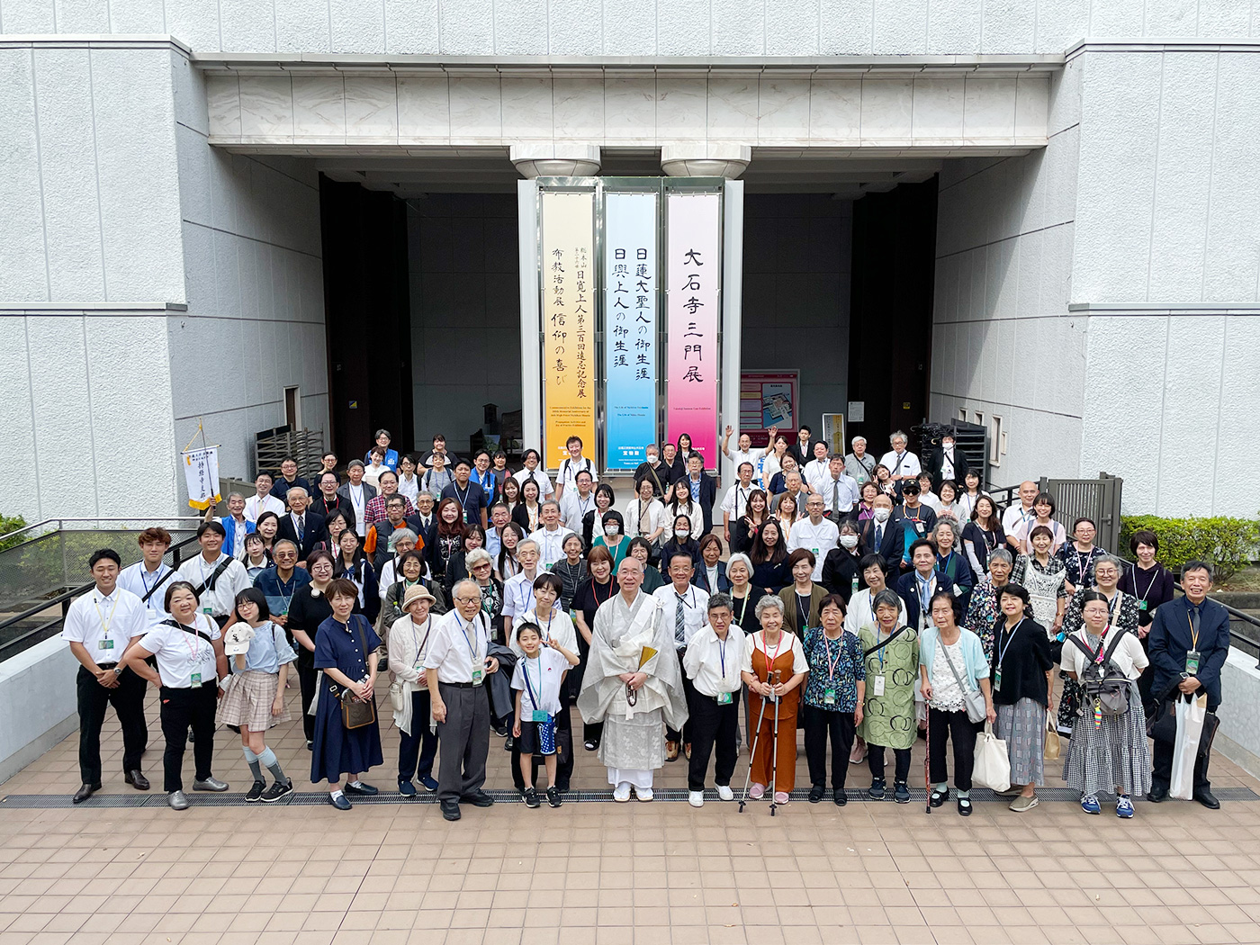 午前11時30分からの御開扉終了後、いったん休憩坊に戻り各々昼食をいただき、天野御住職より種々ご挨拶をいただいたのち、皆で宝物殿の見学・記念撮影に出発いたしました。宝物殿では日寛上人第三百回遠忌記念展、および日顕上人第七回御忌記念展が開催されており、両上人様の御事績をたどり御報恩謝徳申し上げ、参加者一同、感激のうちに今回の支部総登山を修めさせていただきました。