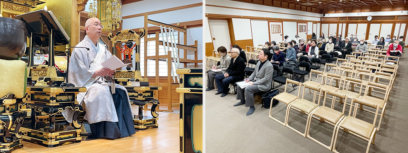 法要は献膳・読経・唱題と如法に厳修され、そののち御法話に先立ち天野御住職より令和8年2月度・御報恩御講拝読御書『弁殿尼御前御書』を拝読申し上げ、通解並びに弁殿(六老僧・日昭)尼御前について、および同抄全体の概要等について述べられたのち、「一生、何も障害なく信心を全うできればそれに越したことはないが、障魔は競い起る。第六天の魔王は非常に厳しい魔であるけれども、その時に、自分が正しい信心をしている証拠であり、ここで頑張れば仏界に至るのだと自身を励まして、御本尊様から離れることなく信心を全うしていただきたい。そのためには、前向きな気持ちで信心に励み、御本尊様の素晴らしさをを伝えようとしていくならば、天魔が入り込む隙間もなくなり、折伏も進んでいく。後ろ向きの気持ちでは折伏はできない。」等との御指導をいただき、最後に御法主日如上人猊下の御指南を引用され、「魔に負けてしまうのは自分自身の問題である。生涯にわたってお題目を唱え折伏を行じ、大聖人様からお褒めいただけるよう精進してまいりましょう。」等と御法話を結ばれました。