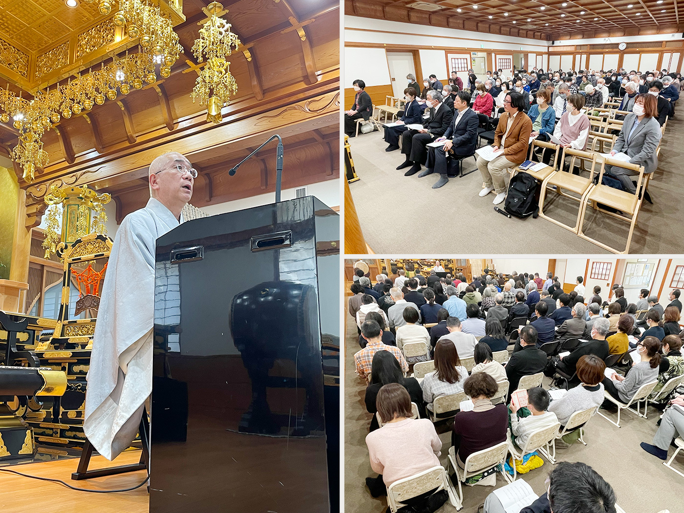 法要は献膳・読経・唱題と如法に厳修され、そののち御法話に先立ち天野御住職より令和8年2月度・御報恩御講拝読御書『弁殿尼御前御書』を拝読申し上げ、通解並びに弁殿(六老僧・日昭)尼御前について、および同抄全体の概要等について述べられたのち、「一生、何も障害なく信心を全うできればそれに越したことはないが、障魔は競い起る。第六天の魔王は非常に厳しい魔であるけれども、その時に、自分が正しい信心をしている証拠であり、ここで頑張れば仏界に至るのだと自身を励まして、御本尊様から離れることなく信心を全うしていただきたい。そのためには、前向きな気持ちで信心に励み、御本尊様の素晴らしさをを伝えようとしていくならば、天魔が入り込む隙間もなくなり、折伏も進んでいく。後ろ向きの気持ちでは折伏はできない。」等との御指導をいただき、最後に御法主日如上人猊下の御指南を引用され、「魔に負けてしまうのは自分自身の問題である。生涯にわたってお題目を唱え折伏を行じ、大聖人様からお褒めいただけるよう精進してまいりましょう。」等と御法話を結ばれました。
